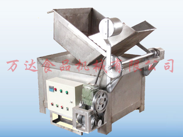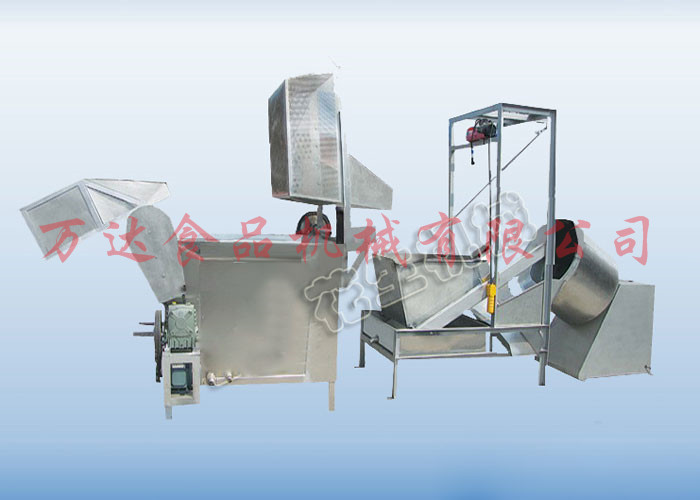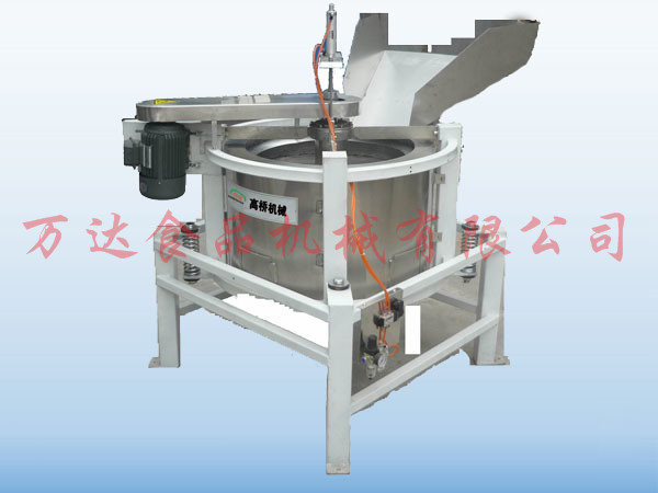 全自動脫油機的基本工作原理是利用脫油筒高速轉動產生的離心力的作用將粘附在花生米表面的附油脫離出去,脫離下來的油通過機架上的出油管流到機體外的收集桶中。脫油后的花生米通過氣缸控制脫油籠中閥的提升,從落料口通過滑落到冷卻輸送帶(或料斗)中,然后進行下一步工序處理。
